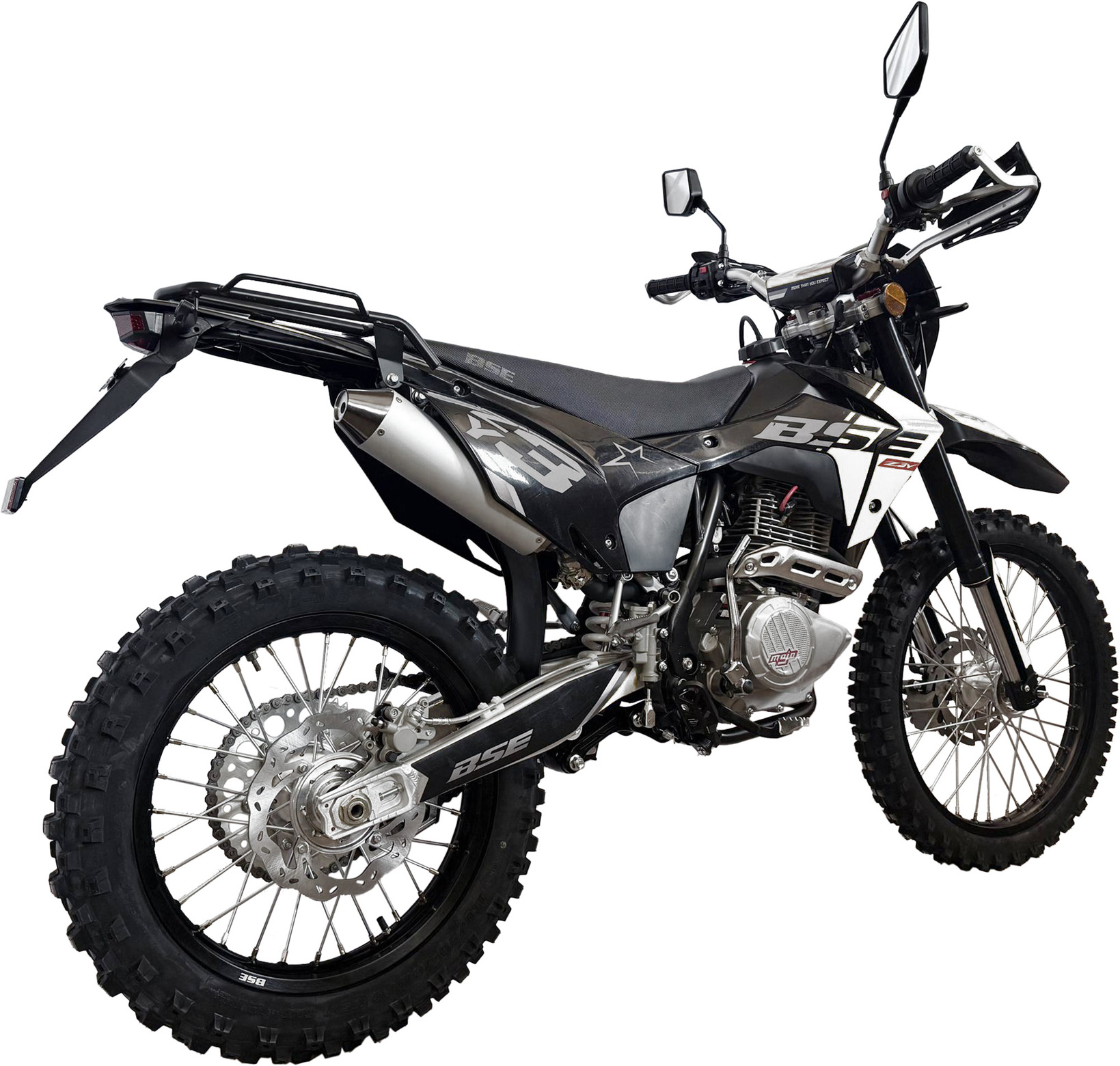 Где бы ни звала дорога – в городской поток, на загородный серпантин или в дикие тропы бездорожья – BSE Z3 Y готов к любым вызовам. Это настоящий среднеразмерный эндуро двойного назначения, сочетающий в себе надежность, мощность и комфорт. А наличие ПТС открывает перед вами все дороги: регистрируйте, заправляйте – и в путь! Мощь и контроль Сердце Z3 Y – 250-кубовый двигатель Zonsen ZS172FMM-5 с балансирным валом, выдающий 21 л.с. Карбюратор Nibbi обеспечивает стабильную работу, а усиленная стальная рама гарантирует жесткость и долговечность даже в жестких условиях. Легкий, маневренный, но при этом уверенный на любом покрытии – этот мотоцикл идеален для райдеров, ценящих динамику и управляемость. Комфорт и безопасностьГидравлические тормоза HSК Racing – мгновенная остановка в любой ситуации.Светодиодная оптика – яркий свет фар и четкие сигналы поворотов.Эргономичное сиденье и спортивный руль – удобство даже на долгих дистанциях.ЖК-панель приборов – все ключевые параметры под контролем.Готовность к бездорожьюПеревернутая вилка и регулируемая подвеска – плавность хода на ухабах.Внедорожная резина и усиленные обода – сцепление даже на сложном рельефе.Защита рук, багажник и надежная 520 цепь – никаких компромиссов в экстремальных условиях.Стиль, который впечатляет Агрессивный дизайн, рельефный пластик и спортивная посадка делают BSE Z3 Y не только технически совершенным, но и визуально эффектным мотоциклом. Это выбор тех, кто ценит свободу, адреналин и бескомпромиссное качество. BSE Z3 Y – твой пропуск в мир настоящих приключений!