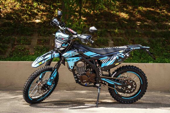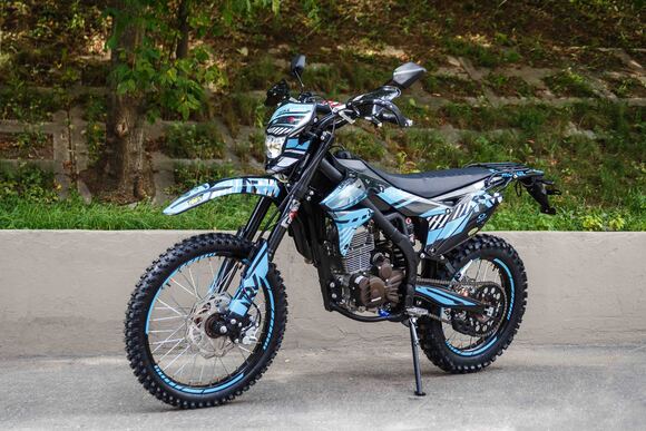 Regulmoto ZR 250 Enduro 2021г.«Regulmoto» представляет вниманию поклонников фри-райда мотоцикл Regulmoto ZR 250 Enduro. Стильный и доступный байк многоцелевого назначения найдет применение в качестве надежного аппарата для покорения бездорожья, а также может использоваться для решения широкого круга утилитарных задач и передвижения по дорогам общего пользования.В основе конструкции Regulmoto ZR 250 Enduro – мощная стальная рама, поставленная на колеса 21/18, которые наилучшим образом подготовлены к офф-роаду. Ободья и ступицы колес изготовлены из алюминия, также установлены усиленные спицы и буксаторы, надежно фиксирующие покрышки на ободе. Подвеску эндуро-байка представляют длинноходная телескопическая вилка-«перевертыш» спереди и стальной маятник с прогрессией и моноамортизатор с компенсационным резервуаром сзади. Работу амортизаторов при необходимости можно настроить при помощи регулировки сжатия/отбоя.Силовая установка мотоцикла представлена одноцилиндровым 4-тактным двигателем Zongshen SZ172FMM-3A с воздушным охлаждением рабочим объемом в 249,9 см3; за подготовку топливной смеси отвечает карбюратор Nibbi PE28. Технический потенциал надежного и производительного двигателя позволяет демонстрировать 21 лошадиную силу максимальной мощности и 18 Hm максимального крутящего момента.Regulmoto ZR 250 Enduro также привлекает внимание отличными внешними данными: мотоцикл комплектуется крепким и гибким пластиком с ярким дизайном, выполненным в узнаваемой стилистике популярной модели известного производителя. Подбор качественных компонентов также заслуживает внимания: