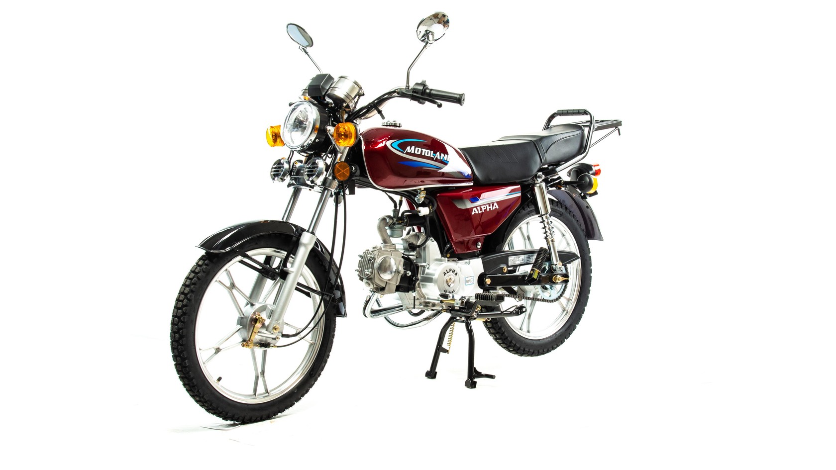 MotoLand Alpha 11 это всеми полюбившейся мопед который не нуждается в представлении.Мопед можно использовать для самых различных целей: для одиночного или совместного передвижения в городском потоке, сельской местности, поездки на природу, рыбалку и охотуПри этом он универсален и подходит мотолюбителям любого возраста,и опыта вождения.Для подростков, подойдет как подарок и первый мотоцикл для только начинающего свое знакомство с миром мототехникиВзрослых, которым нужна техника для поездок из точки А в точку Б и обратно, именно в таком режиме он способен показать себя с лучшей стороны.Мопед полностью отвечает требованиям к безопасному движению по городу и за городом: оснащен фарой дальнего и ближнего света, поворотниками, стоп-сигналом, звуковым сигналом, зеркалами заднего вида, габаритными светоотражателямиДля того чтобы ездить на мопеде, нет необходимости в регистрации в ГАИ и страховка.Техническая сторонаМопед поставляется с 50 кубовым одноцилиндровым четырехтактным двигателем с воздушным охлаждением ZS50-A (139FMB) конструкция которого полностью повторяет знаменитый мотор HONDA CUB.Установлен карбюратор PZ19 с системой обогащения и пуском в любую погоду и время года.Двигатель работает ровно, имеет высокую мощность в широком диапазоне оборотов, что позволяет комфортно трогаться и быть уверенным, что двигатель не заглохнет в неподходящий момент.Двигатель имеет возможность легкого запуска с кнопки на руле, так как имеет электростартер, а при необходимости можно воспользоваться кик стартером.Механическая трансмиссия содержит 4 передачиМопед имеет хорошую динамику разгона, расход 3 л на 100 км, объем бака 7л, которого хватит на 200+км
