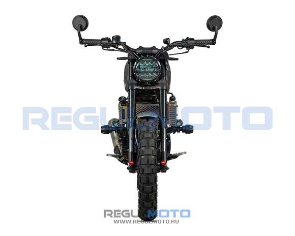 Regulmoto Fargo 300 новинка 2024 года!УправлениеУдобная прямая посадка позволяет как неспешно передвигаться, любуясь пейзажами, так и маневрировать на бездорожье или в городском потоке. Байк отличается послушностью, а тормоза обеспечивают замедление с любой скорости.Колеса и подвескаПередняя перевернутая вилка мягкая и плавная. Это позволяет преодолевать с комфортом даже самые «убитые» дороги. Задний моноамортизатор обеспечивает стабильность на бездорожье и в труднопроходимых местах.Колеса на Fargo 300 имеют эффектный внешний вид. Широкие шины с выраженным шипом обеспечивают отличное сцепление с любой поверхностью, а спицованные диски защищают байк от загрязнения и выхода из строя.ДвигательВ версии Regulmoto Fargo 300 используется двигатель от известного производителя Zongshen 174MM (CBS300) с водяным охлаждением и карбюратором Nibbi Racing PWK 34. Объединяя инновационные технологии и высокую производительность, он обеспечивает отличную динамику, экономичность и долговечность, делая каждую поездку ещё более впечатляющей.РамаРама Regulmoto Fargo 300 имеет классическую компоновку. Сварная штампованно-трубчатая конструкция имеет выверенный баланс между весом и жесткостью, что позволяет раме выдерживать высокие нагрузки и оставаться легкой.КППКороткие передачи 6-ступенчатой КПП хорошо зарекомендовали себя на бездорожье. Вместе с эластичным мотором они позволяют ровно двигаться без выкручивания газа до упора, а жидкостный радиатор охлаждения защищает мотор от перегрева.Regulmoto Fargo 300 — редкий случай, когда в одном мотоцикле идеально сочетается стиль и функциональность. Это настоящий скремблер — мотоцикл, построенный на базе лёгкого городского байка, приспособленного к передвижению вне дорог за счёт установки более длинноходных подвесок и внедорожных шин.При этом мотоцикл отлично вписывается в городской пейзаж, с лёгкостью преодолевает пробки, а за его пределами позволяет срезать путь, прохватив по грунтовкам.