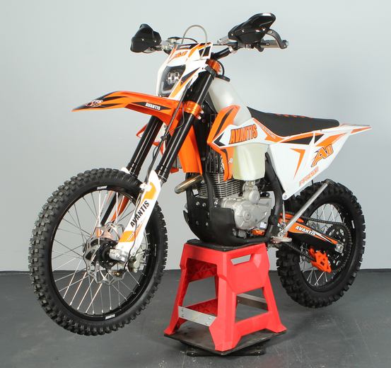 Новый Avantis A8 разработан специально для тех, кто хочет войти в мир эндуро. Комплектация с двигателем ZS 172 FMM-5 — именно тот вариант, с которого стоит начать новичкам.Мощность двигателя составляет 25 л.с., что является оптимальным выбором для первых тренировок на оффроуде. Внедорожная компоновка модели приближена к спортивной серии Avantis Enduro, поэтому данная модель отличается легкостью в управлении и не потребует больших усилий при маневрировании даже у тех, кто впервые сел за руль мотоцикла.Благодаря надежной подвеске ККЕ и большому дорожному просвету Авантис А8 легко преодолевает даже самый сложный рельеф. Однако важно помнить, что это полноразмерный взрослый мотоцикл. Высота по седлу у него составляет 960 мм и накладывает некоторые ограничения: комфортно на этом мотоцикле будет обладателям роста от 175 см и выше.Все элементы управления размещены таким образом, чтобы райдер быстро запомнил расположение основных органов управления. Яркая LED-панель обеспечивает отличную читаемость индикаций и показателей, что позволит легко отслеживать нужную информацию. Яркая светодиодная фара головного света обеспечивает хорошую видимость и большое пятно освещения, поэтому тренироваться на Avantis A8 можно в любое время суток.На Avantis A8 с завода установлены алюминиевая защита рычагов, пластиковая защита картера и герметичная защита всех разъемов. Колеса мотоцикла базируются на легких и прочных ободах UNISON и обуты во внедорожную резину Yuanxing. Данные покрышки отличаются редкой шашкой и обеспечивают хороший зацеп.Приобретая Авантис А8 вы получаете управляемый, надежный, а главное — полностью подготовленный для тренировок мотоцикл, на котором уже в базовой комплектации имеется все необходимое для покорения бездорожья.