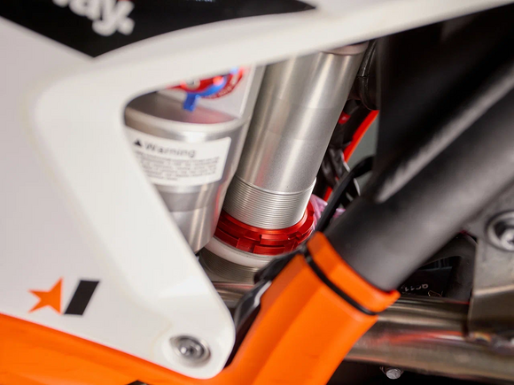 Подвеска – Передня вилка MNT 910mm. Задний моноамортизатор MNT 465mm с прогрессией. Диаметр пера 43мм. Алюминиевый маятник.