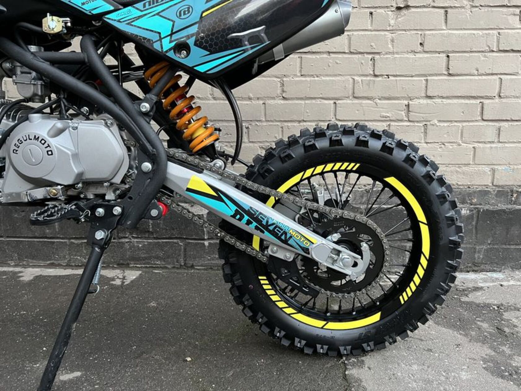 Главная ... Питбайки REGULMOTO Питбайк Regulmoto SEVEN электростартер, Синий/Желтый