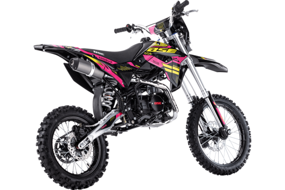 Питбайк BSE PH125 на колесах 17/14 дюймов – один из самых популярных, надежных и продаваемых питбайков 125 куб см среди китайских производителей! Этот классический питбайк объёмом 125 см3 обладает рядом модификаций и полезных усовершенствований, которые дополняют его функционал и отличают от конкурентов. PH125 оснащен колесами классическим для питбайка размером колес 17/14. Основа PH125 - рама из хромомолибденовой стали повышенной жесткости с литыми усилителями - фирменный знак качества завода BOSUER! Cиловая установка питбайка – надежный, тяговитый и мощный 4-тактный двигатель Zonghshen 125 куб см с воздушным охлаждением и мощностью 10 лс. Питает мотор карбюратор Jingke PZ 26. Питбайк оснащен 4-ступенчатой механической трансмиссией. Запуск мотора осуществляется при помощи электростартера или кик-стартера. Подвески с большими ходами: передняя - телескопическая вилка перевёрнуто типа, задняя- моноамортизатор. "Злая" резина, Мощная тормозная система HSK Racing, японские колесные подшипники NTN, усиленная цепь 428 Gold, защита мотора - питбайк полностью укомплектован всем необходимым для покатушек и гонок.