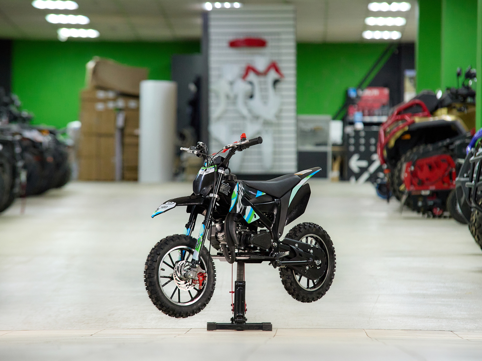• Оснащён всем самым необходимым, прямо как “взрослая” кроссовая мототехника: динамическая подвеска, надёжные дисковые тормоза;