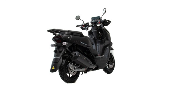 Скутер Motoland Tank - отличный вариант для загородных поездок и рыбалки: имеет множество дополнительных защит и закрытий, колеса 12" с резиной для поездки по грунтовой дороге и асфальту.Брутальный внешний вид и черный цвет делает его не похожим на другие скутера. Дополнительные ДХО, светодиодные поворотники и стоп-сигнал.На скутере установлен одноцилиндровый четырехтактный двигатель 157 QMJ мощностью 10 л/с и рабочим объемом 150 см3 с принудительным охлаждением, что позволяет ему не перегреваться даже в сильную жару. Система запуска кикстартер + электростартер. Трансмиссия - вариатор, не требующий манипуляциях с переключением скоростей. Это очень удобно при эксплуатации и не вызывает сложностей, просто сел, повернул ручку газа и поехал. Все тормоза - дисковые гидравлические.Подвеска - передняя вилка телескопическая и два задних амортизатора. Колесные диски литые алюминевые, на которые установлены качественные покрышки 120/70-12".Выдерживает нагрузку до 150 кг, что позволяет перевозить одного пассажира. Под сиденьем есть большое багажное отделение + площадка для крепления дополнительного кофра. Приборная панель — электронная, с очень крупными, легко читаемыми цифрами и часами; со всеми необходимыми указателями.Габариты: 1900 х 710 х 1170 мм. (без учета зеркал)